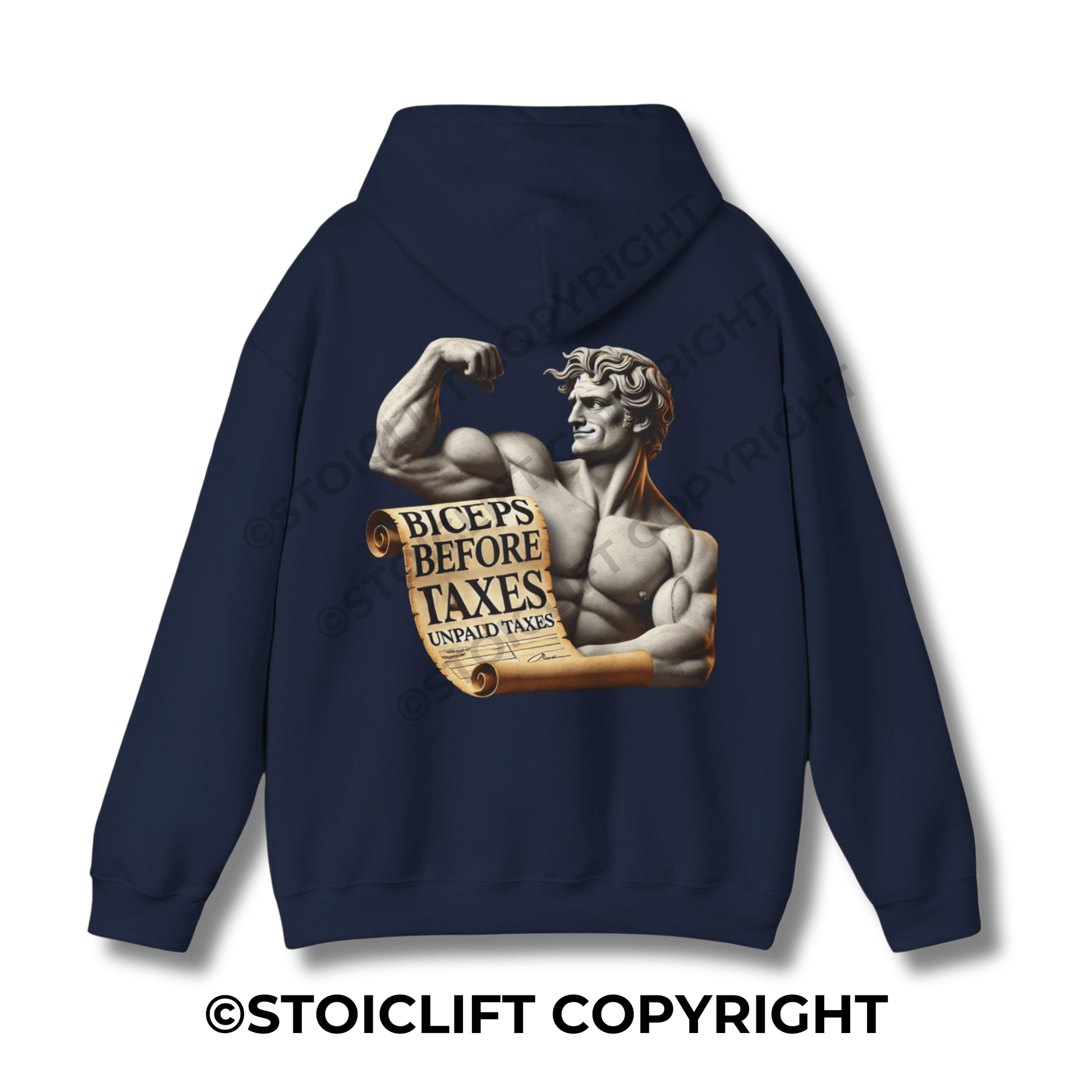 StoicLift Heavy Blend Hoodie - "Biceps before taxes, unpaid taxes."