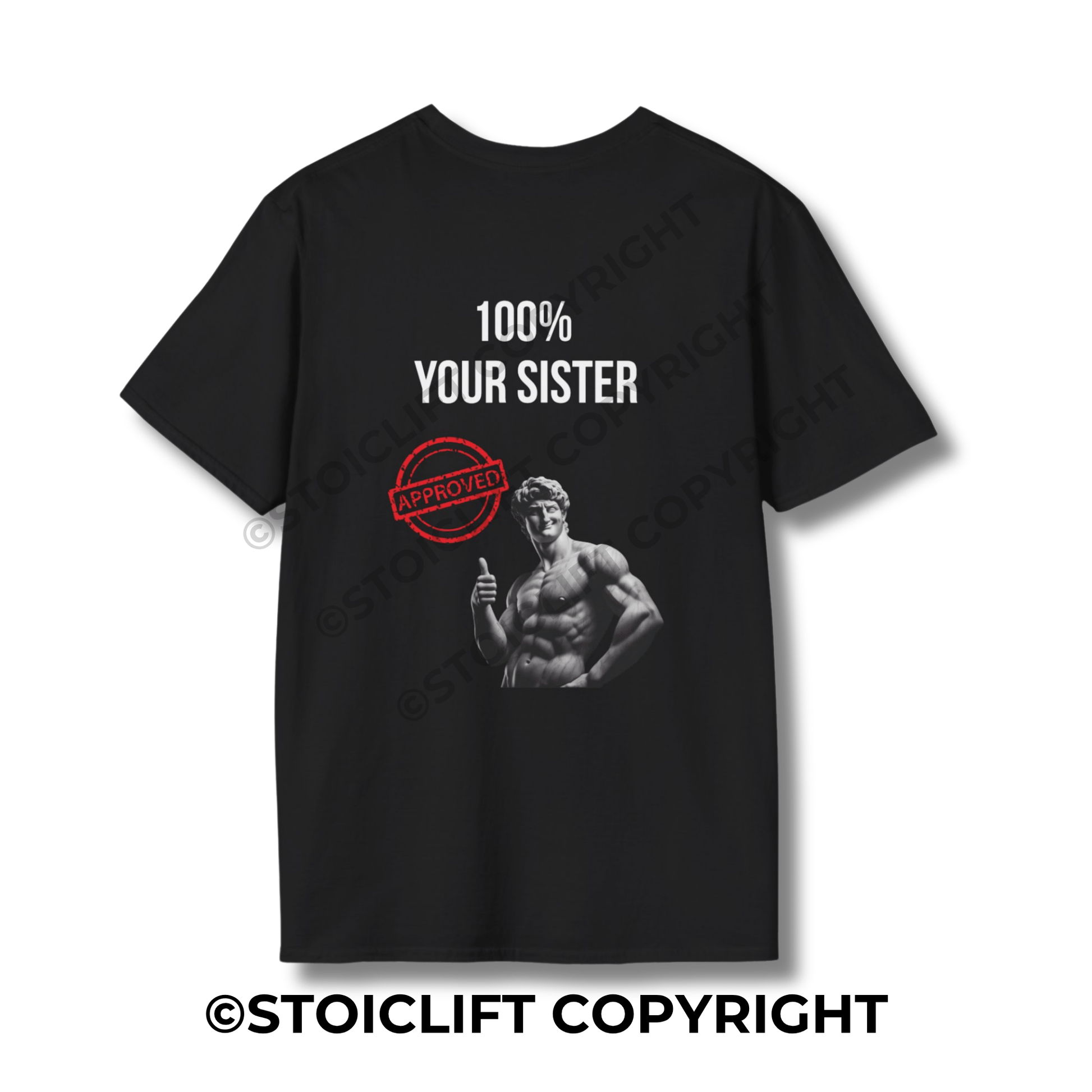 StoicLift Unisex Softstyle T-Shirt – "100% Your Sister Approved"