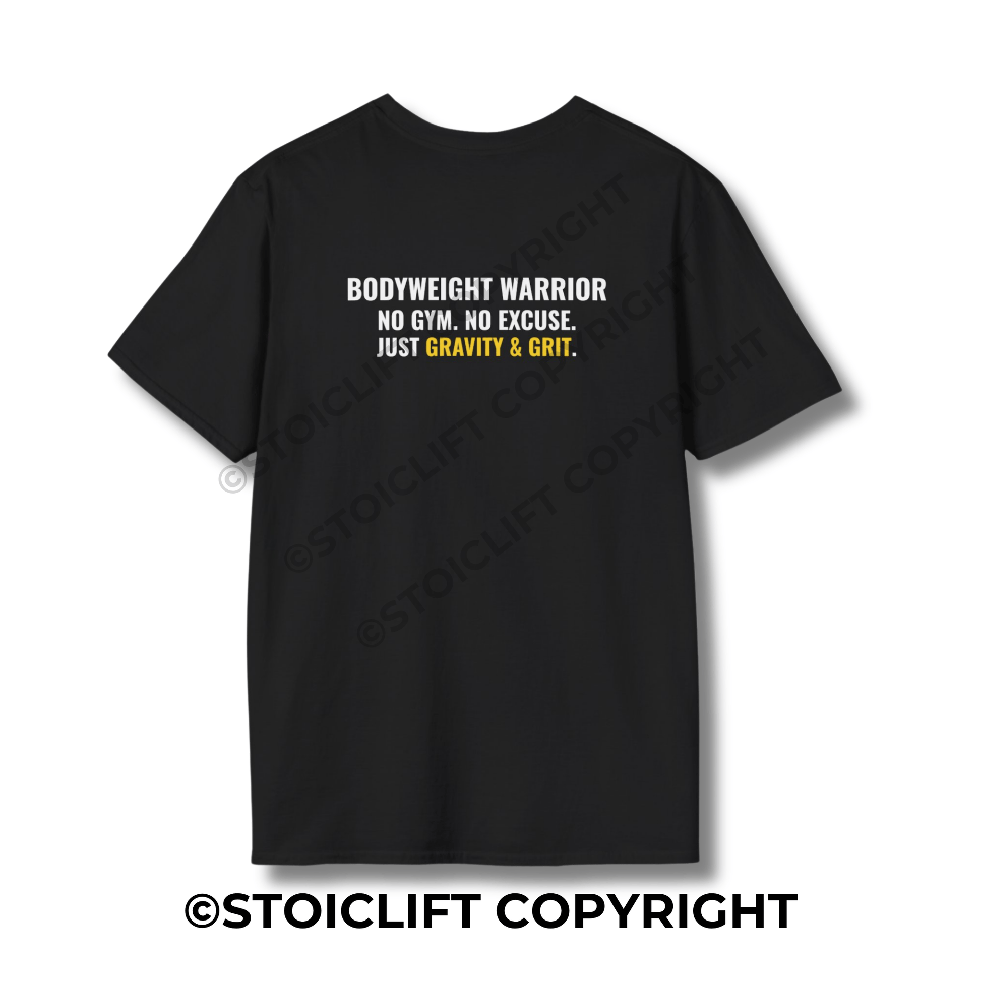StoicLift Unisex Softstyle T-Shirt – "BODYWEIGHT WARRIOR NO GYM. NO EXCUSE. JUST GRAVITY & GRIT."