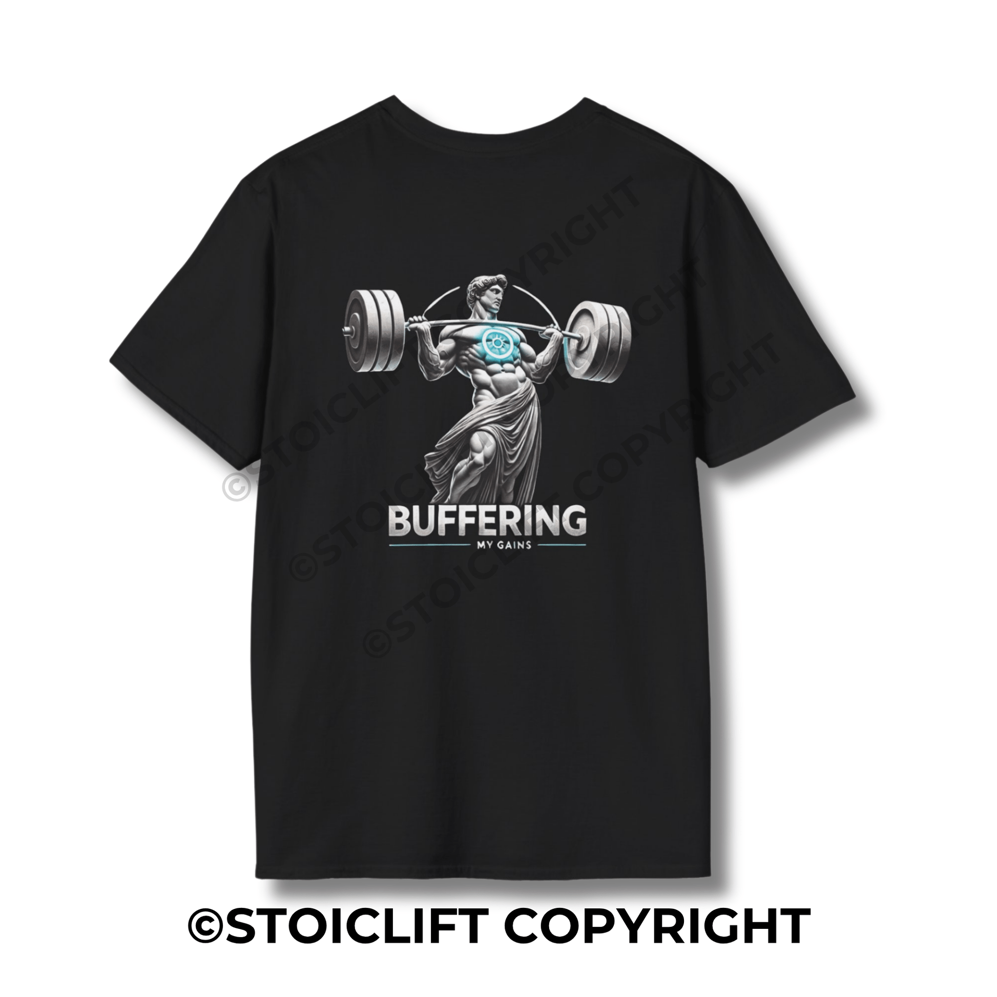 StoicLift Unisex Softstyle T-Shirt – "Buffering my gains."