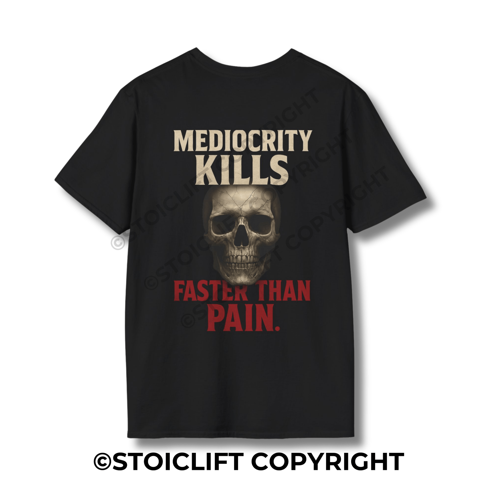 StoicLift Unisex Softstyle T-Shirt – "Mediocrity kills faster than pain."