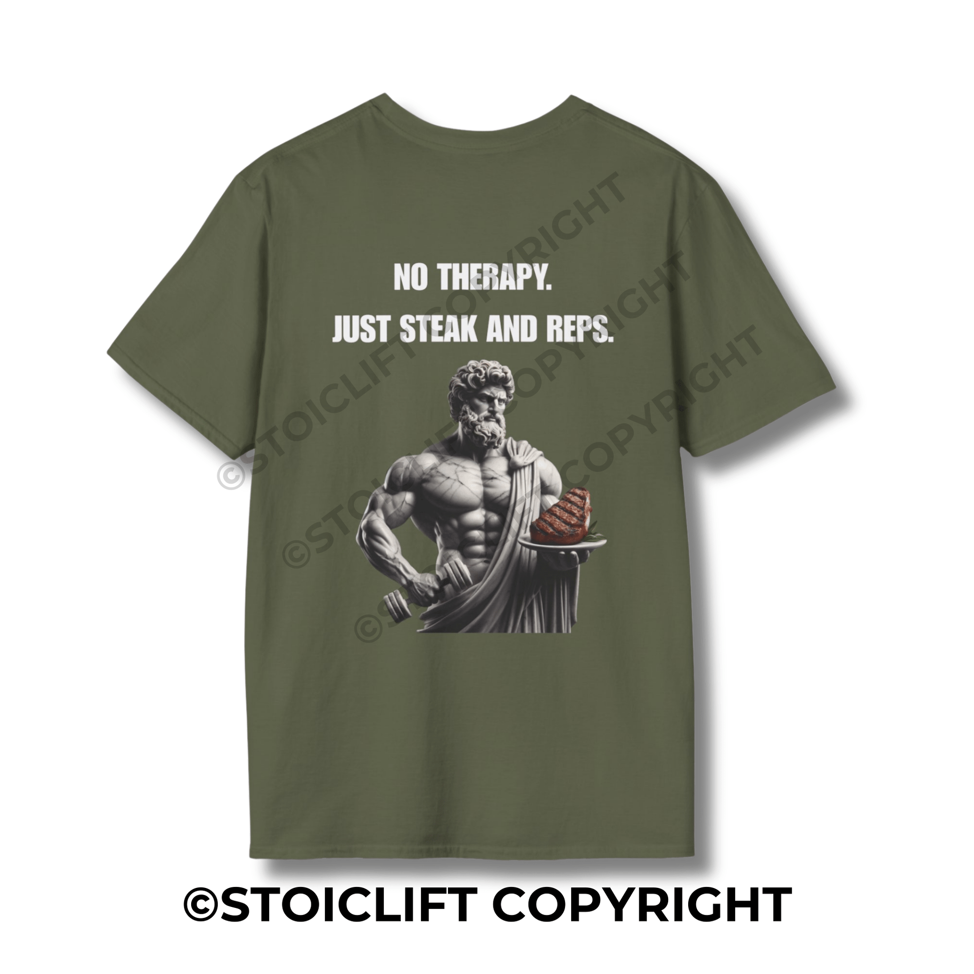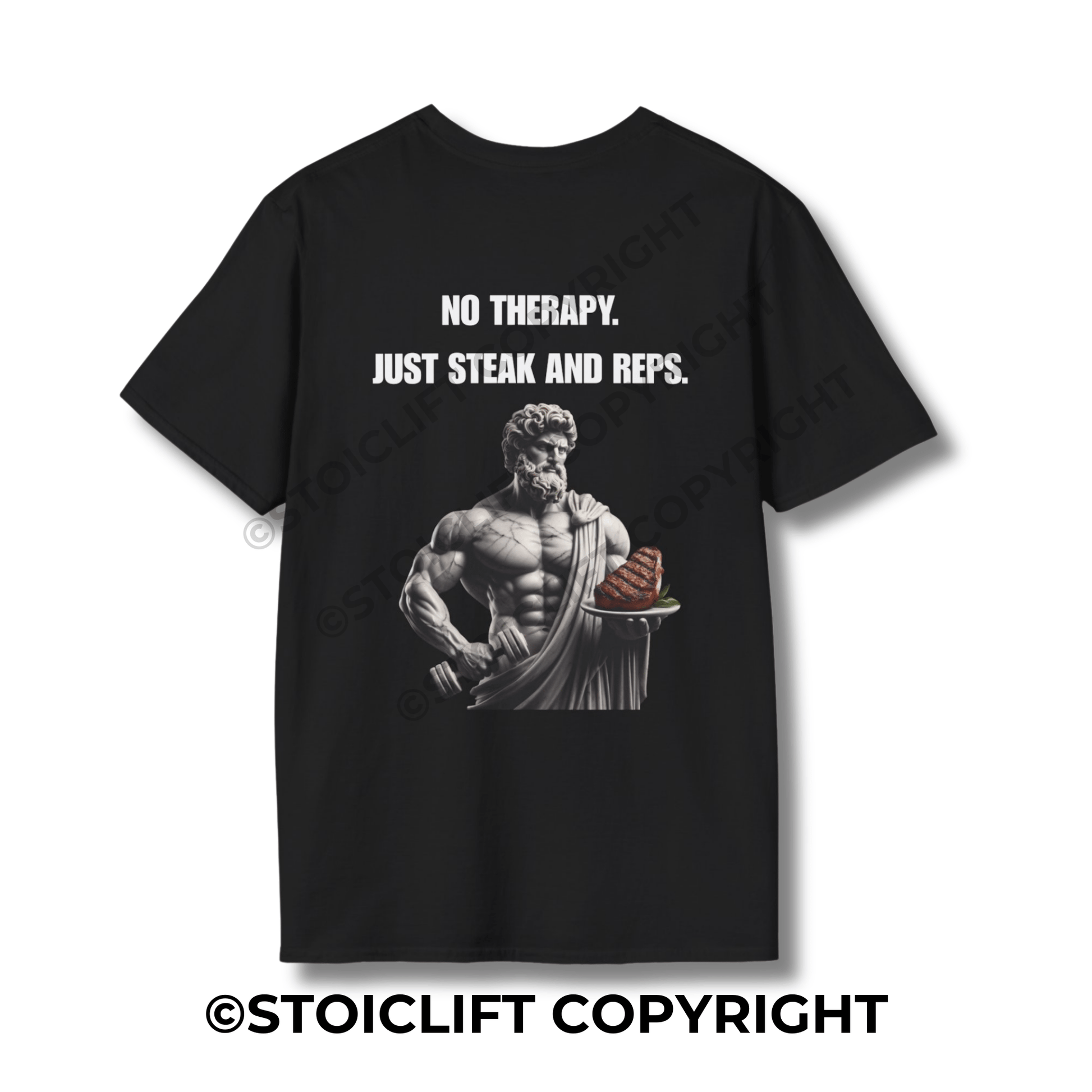 StoicLift Unisex Softstyle T-Shirt – "NO THERAPY. JUST STEAK AND REPS."