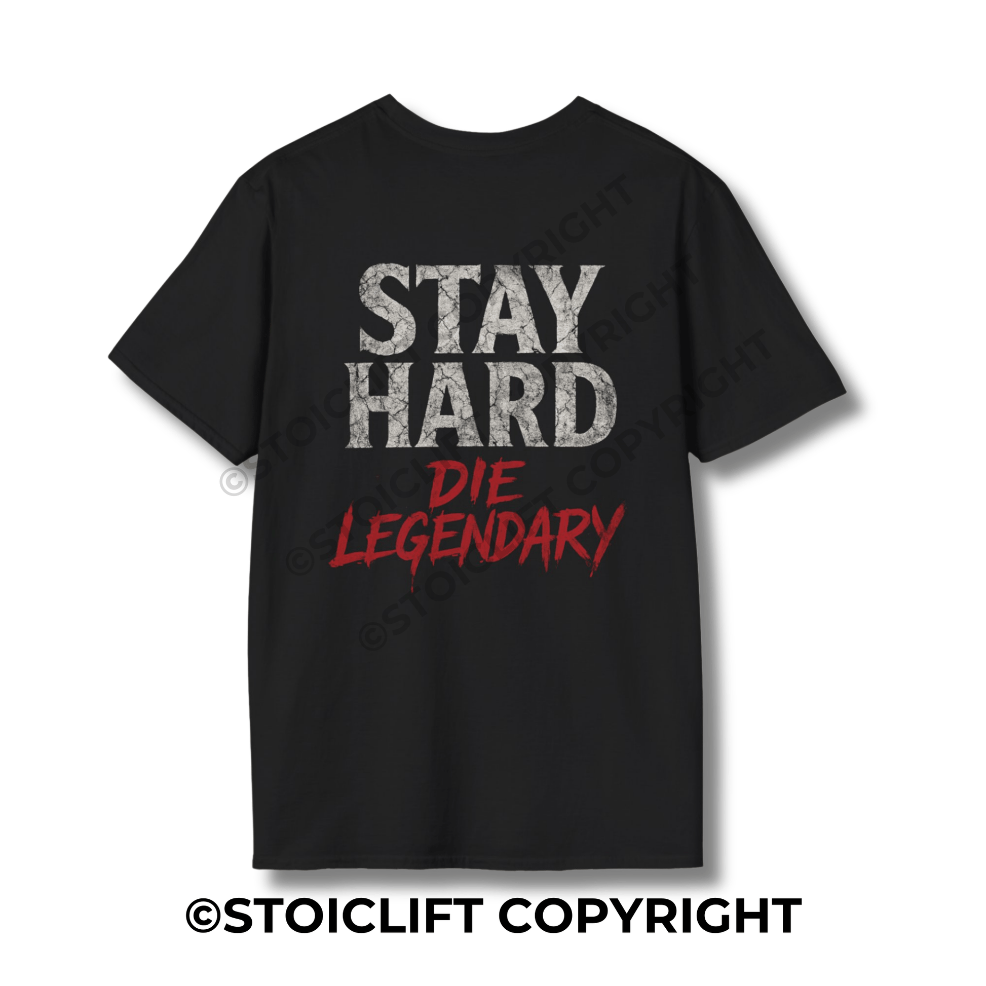 StoicLift Unisex Softstyle T-Shirt – "Stay Hard, Die Legendary."